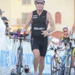 Getting to the race start (and the final bits and pieces) went better than expected and then the Pros were off (06h30) and ten minutes later it would be time (we were wave 4), time to test myself, to test my mind as I really believed I was ready physically… it was a wet water start and I had started in a good spot and got a good start, I remember swimming water polo style after 3-400m to see how I was doing and I was lying about 4th on some good feet and I was pushing really hard. At about 800m my first challenge surfaced, as I went into oxygen debt and realised I had started too fast(probably misjudged my ability without the wetsuit)… it’s the worst feeling ever, you are less than 15 minutes into a World Championships and you have just ‘blown’, you’ve lost the feet, are in no man’s land and faced with split second decisions… well mine was firstly to ban all negative thoughts/emotions and to try and think rationally/positively and not to panic, so decided to swim breastroke (yes about a dozen strokes as I was hyperventilating) and to wait for the small group about 60m back, in the meantime I had to recover before they caught me. Well I never recovered in that swim, so it was tough hanging onto the next group but I just had to if I was going to salvage something and when I hit land in about 32 odd minutes it dawned on me that I had just had the worst swim of my entire life (worse than last year with the broken collar bone), not a great start. There was a 400m run to ‘Trab=nsition’ 1 and I was labouring, this was not going according to plan, but all the while I was trying to remain positive.